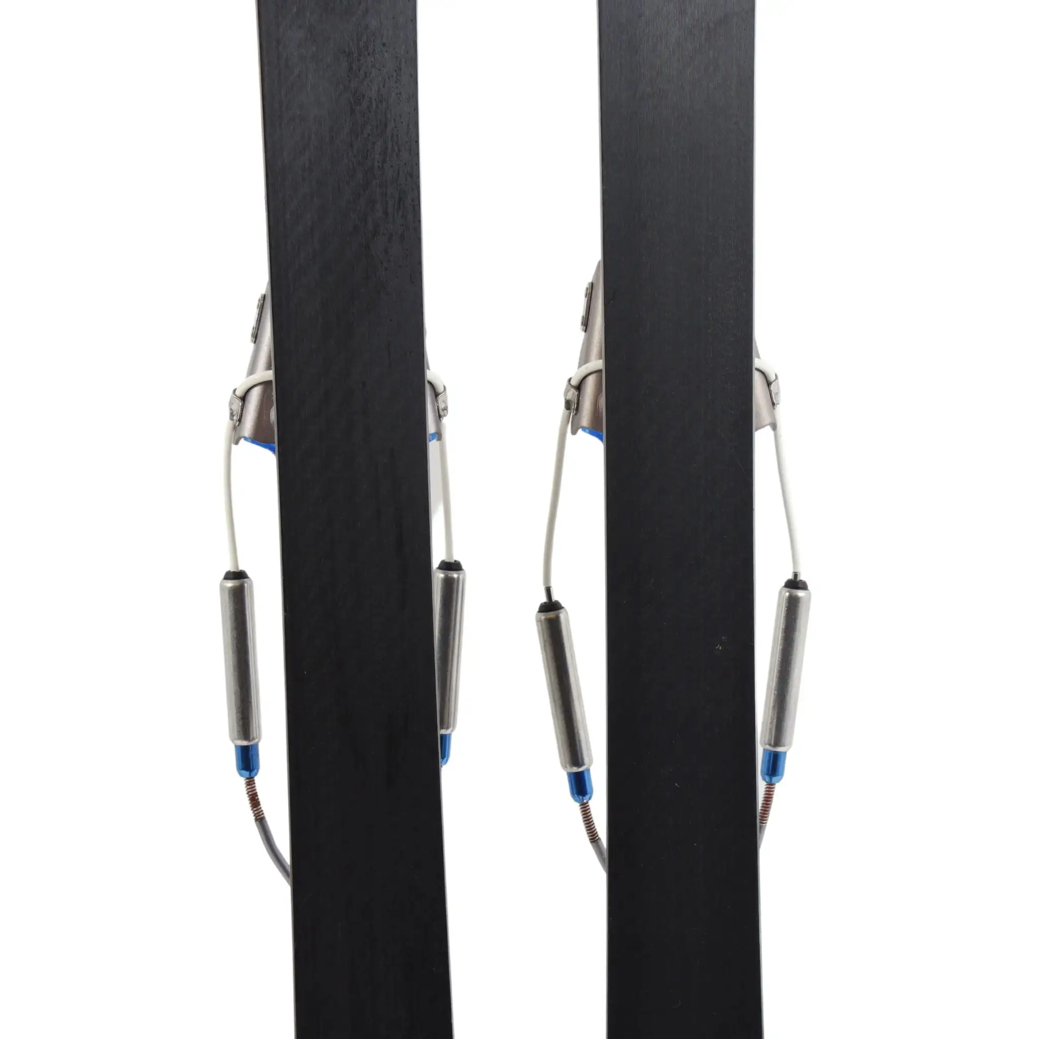 Binding: Good.G3 Targa Women’s. Adjustable. Some adjustment range must be made by unscrewing the toe plate and adjusting the wire for boots smaller than ≈ 24mondo. Ski has previously been mounted to a different binding, thus the hole plugs.