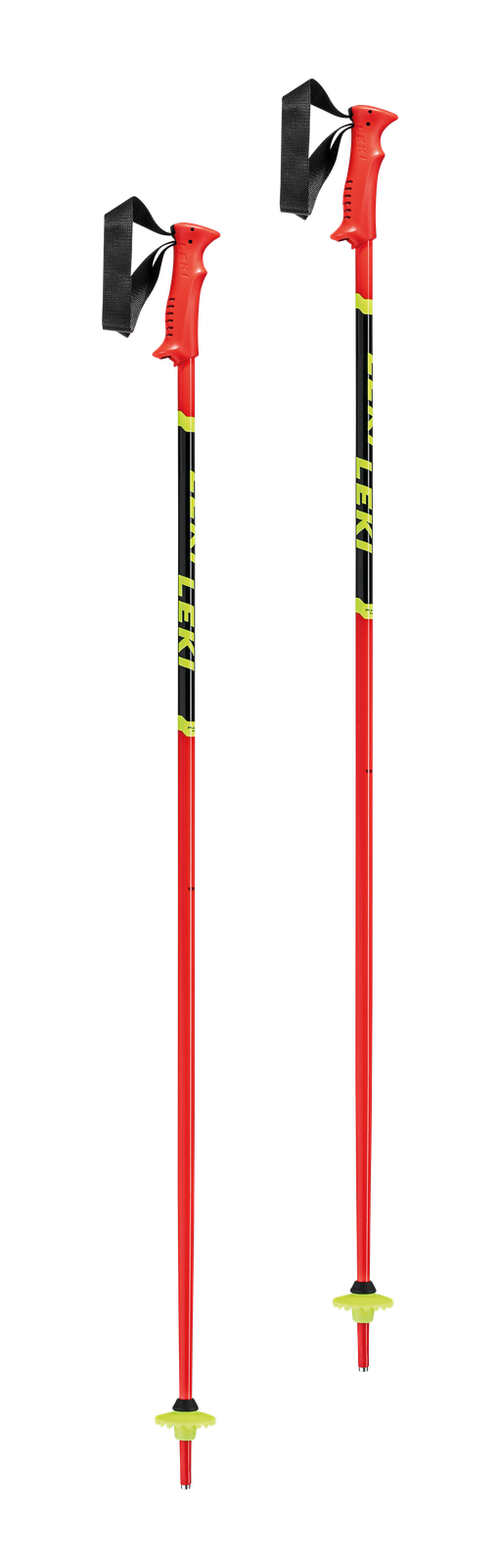 The Leki Racing Kids ski poles are a must-have for little kids with big dreams. These kids ski poles are budget friendly and are specifically developed for kids with a compact grip and smaller strap. They include PA Safety Hard grip with easily adjusting strap and a safety release. The aluminum TS shaft is sturdy and durable and the steel tip allows for precise poles planting and optimal grip in all terrain.