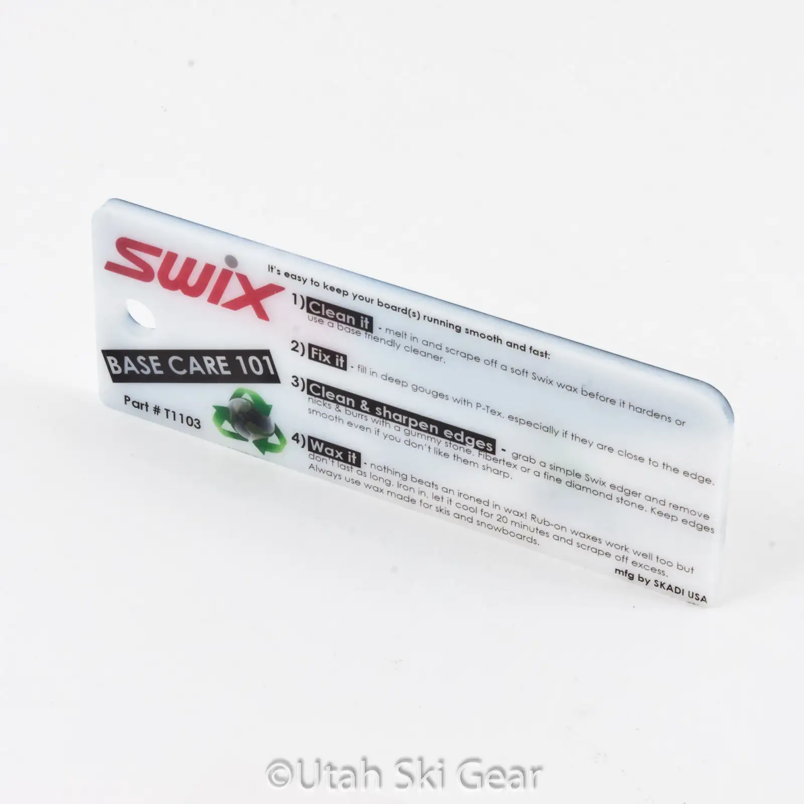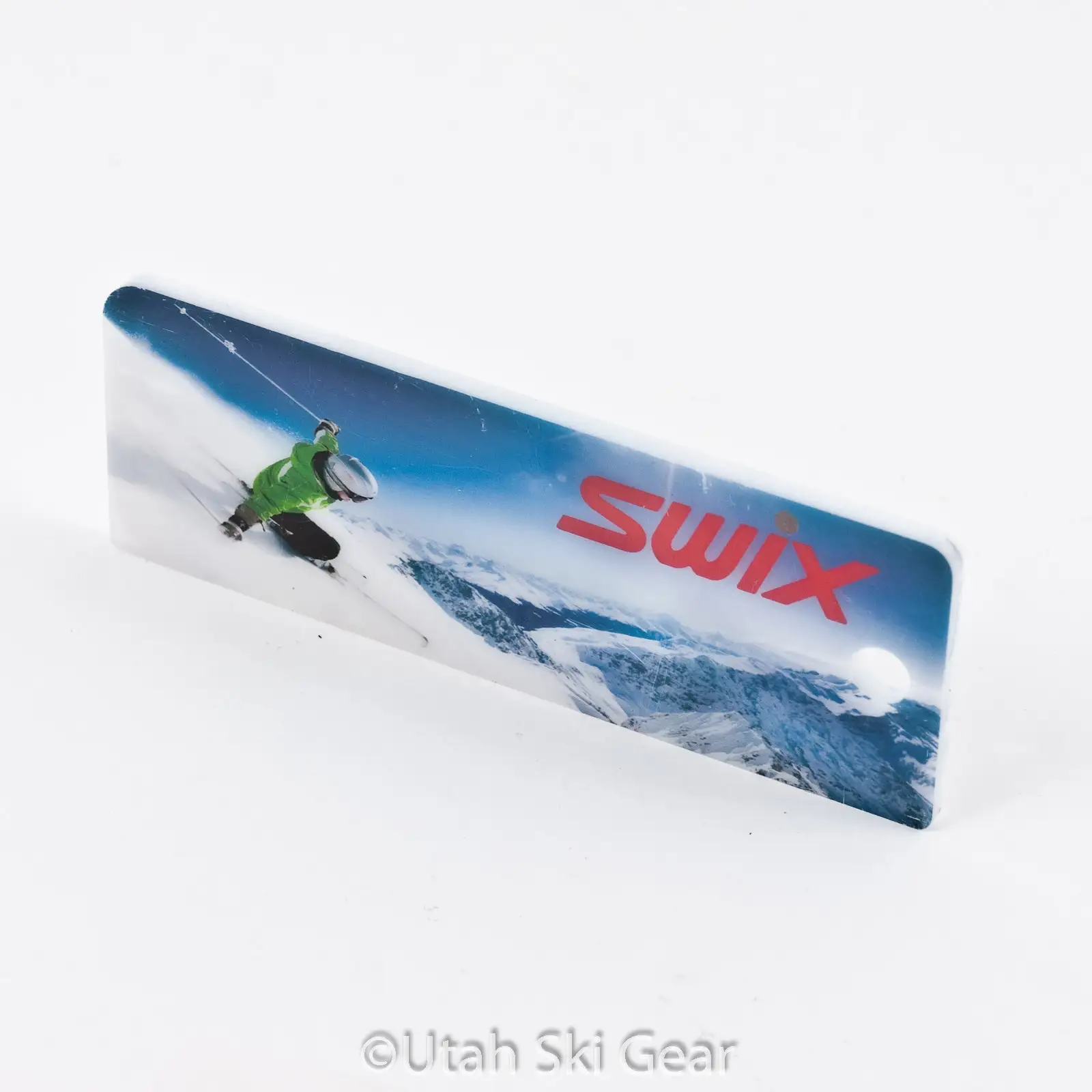 This 6 inch wax scraper from Swix is 4mm thick, to give you the rigid resistance you need when removing cooled wax from the bases of your skis. This scraper has a handy Base Care 101 guide printed on the back and an inspiring print of a skier ripping up some backside terrain pictured on the front.