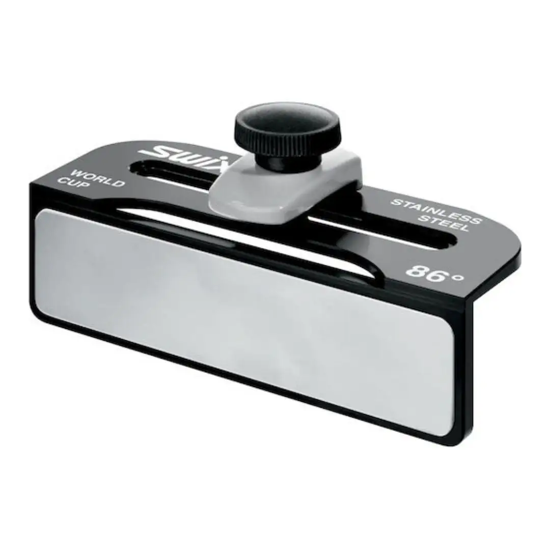 The Swix Worldcup Side Edge File Guide with Stainless Steel Plate 86 Degree is an extremely precise file guide for tuning side edges. Designed for enthusiast and professional tuners, this WorldCup file guide has a Stainless Steel plate for precision. This product also includes a built-in clamp.